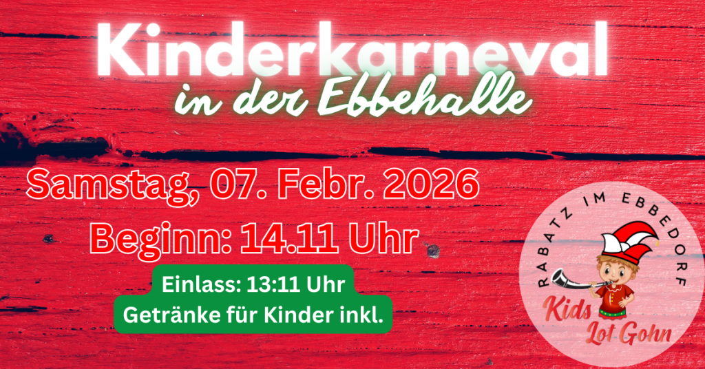 Stolz sind wir auf unsere mittlerweile drei eigenen Kinder-/Jugengarden: Die Ebbeflöhe, die Konfetties und die Ebbesterne. Sie treten, wie auch Husaren und Funkenmariechen und viele Garden aus den Nachbarorten an diesem Tag auf. In den Programmpausen haben Clowns & Feen, Piraten & Käfer und wer da nicht sonst alles herum schwirrt, Gelegenheit zu toben, zu spielen und zu tanzen und das zur Kinder-Musik der „Rockfabrik“.